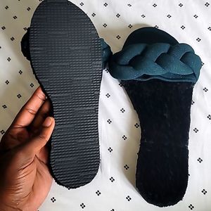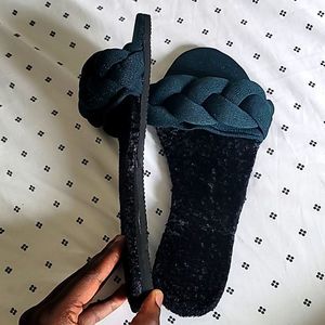 Green plaited sandals