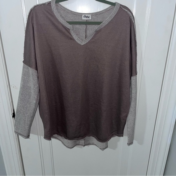 Stylish long sleeve oversized top pulse boutique Features a brown body with cream sleeves. Perfect for casual wear. This is brand new