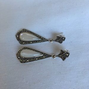 NWOT. Sterling silver Pearl Marcasite earring, it's hallmark 925 on the back on the earring. It approx. 1. 7/8 inch long.