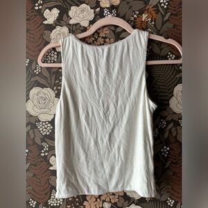 63% poly, 30% rayon, 7% spandex. Hand wash cold. Front and side cut-outs. Ribbed fabric.