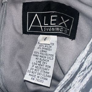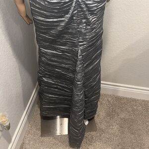 NWOT vintage Alex Evenings gun metal grey crinkled evening dress. Pit to pit 17”, length 59”, waist 13.5”