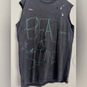 NWOT tank Travis Barker style drummers tee, extra long with an upside-down free tag stitched in by hand. Free King Slime, then head to the BEECH / PHUCK tee — a classic drummers tee by Duluth x Klaus x Alice St Ongë x Gallery Dept. This totally unique drummers tank is also extended in length, making it an oversized large men’s tank — sleeveless and made from heavy fleece! I can model it or provide measurements if you ask; I’ll be happy to help! Thanks for stopping by our store. Remember, this unique Free King Slime and head to the beach to ski tee is a favorite of mine. Make sure to ask which way the “BĒÆCH (BIECH) (prosecutor)” is — because she certainly didn’t want the thug to pause and say “THAT WAY—->💪💪” lol #kingslimeisfree #travisbarker #drummers #tank