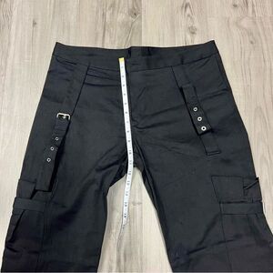 New without tags vintage y2k bondage pants black cotton/spandex flare cut sz 15 by Girlfriends LA. Never worn. Have been in storage since purchasing in the late 90’s. Zip button fly. *please note button is missing*. Two deep side pockets as shown accented with silvertone grommet and buckle straps. Slight stretch. Rare. Measurements in photos.