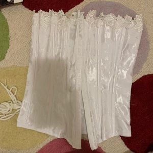 Brand new white corset, size 32. Never worn, but saw a light blue spot on the string when looking it over. Shown in photo