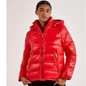NWOT womens Guess Hooded Puffer Jacket RED XL