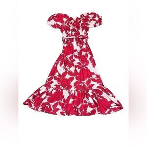 NWOT women’s LUSANA LEETA BELTED Rosa Reed & white floral midi DRESS xs small