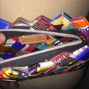 NWOT zipper clutch made out of wrappers