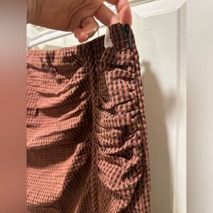 NWOT Luci Russet Gingham Midi Skirt Side Slit Seersucker, size Large
