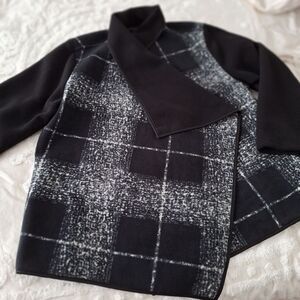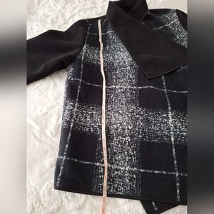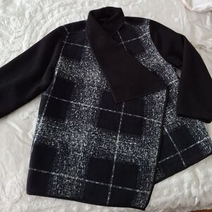 NWOT 3X Black and Gray White, Plaid Fleece Coat Jacket Open