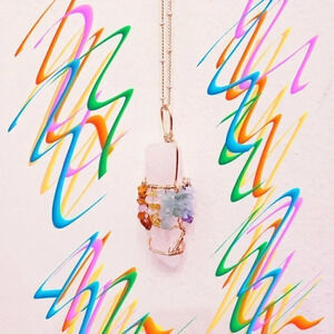 NWOT 7 Chakra on Quartz Tree of Life Necklace 14K Rose Gold Plated Reiki Energy