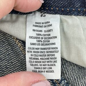 Women’s medium-dark wash jean shorts with very subtle rips (2 on front right side, 1 on back left pocket). All rips were were intentionally designed for the look. Gold and copper threading sewn all throughout. The crisp fold at each leg stays put, as it is sewn shut. Material stretches. Smoke-free and pet-free home.