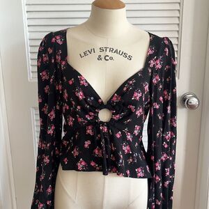Elevate your evening look with this AFRM top in classic black adorned with a pink floral pattern. This long-sleeve top features a stylish keyhole detail under the bust, adding a touch of allure to your outfit. It's the perfect choice for a night out on the town, combining elegance and a dash of charm. This top is brand new without tags (NWOT). Don't miss out on this chic addition to your wardrobe!