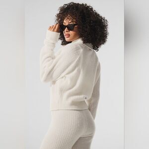 NWOT ALO Yoga Cashmere Plush Waffle 1/4 Zip Pullover Sweater Size Small Ivory
