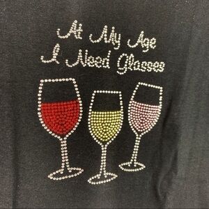 NWOT-ANVIL "At My Age I Need Glasses" RhineStone Embellished Wine Glasses Tee MD