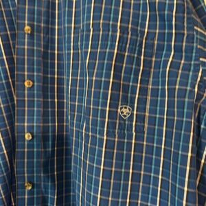 🌹 NWOT:ARIAT Pro Series Blue Casual Button Down Shirt with Plaid Design