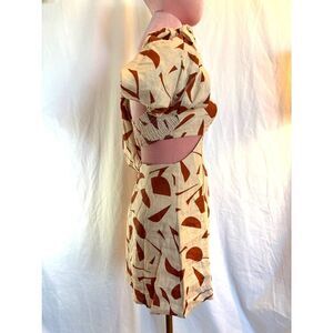 New Without the Tags, ASTR the Label Heather Dress Linen Rust Abstract Lined Open Waist, Back Elastic Panel, Open Sides & Back, 3/4 Balloon Sleeve