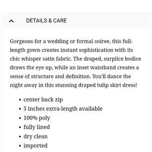 New without tag After Six by Dessy Collection Style 6864 Faux Wrap Whisper Satin Maxi Dress with Draped Tulip Skirt in Toasted Sugar pink beige. Sise 8 please see measurements pictures to be sure of fit. Retail: $261