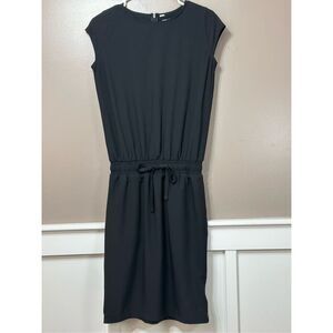 NWOT Albion Going Places Nylon Dress Black Cap Sleeves Drawstring Waist Women's