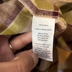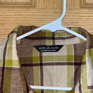 This shirt is made by Alpine Design. It’s a soft long sleeve plaid flannel button front. Size large and NWOT. Smoke and pet free home.