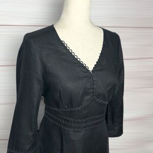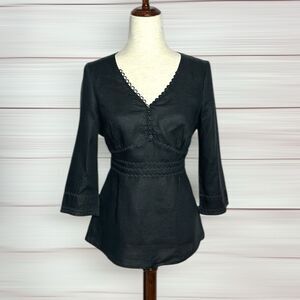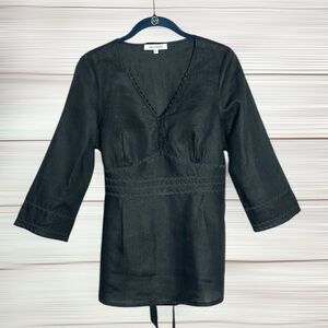 NWOT Anne Fontaine Charlette Blouse Top Linen Black V-Neck Tie Back Fr40 US6-8