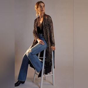 NWOT Anthropologie BB Dakota Dulcinea Sequined Duster Jacket In Rose Extra Small