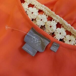 (Anthropologie) Vanessa Virginia Orange Crochet Cutout Tiered Tank Top Blouse