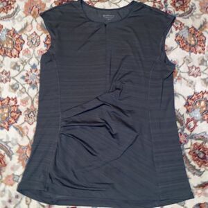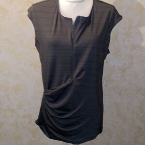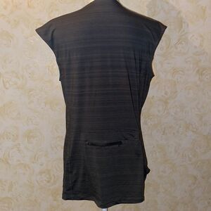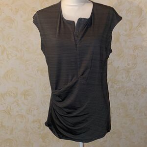 Beautiful gray top with zip up neckline from Athleta. Material wraps around the mid section for flattering cut. Zippered back pocket adds style!