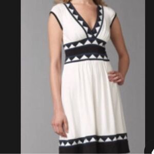 NWOT BCBGMAXAZRIA Black/Ivory Geometric Print Matte Jersey Knit Dress. Size Med.