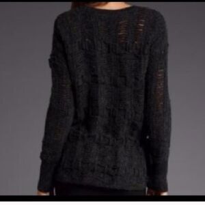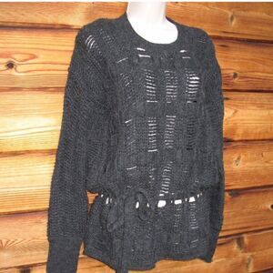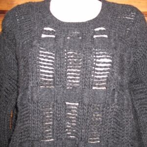 BCBGMaxAzria Open Weave Alpaca Blend Oversized Sweater, Size Medium, Charcoal Gray, New without Tags