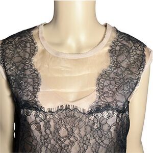 NWOT BCBG Maxazria Lace Mini Dress. Great Condition. Sz small. Lined. Black lace on nude organza. Very feminine and really cute. Nylon and silk combination.