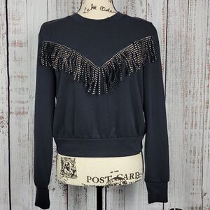 NWOT Bar III Black Small Western Cowgirl Boho Chic Studded Fringe Tassle Sweater