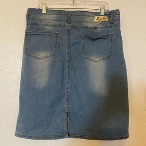 NWOT-Be Girl Jeans distressed denim with decorative button front and zipper, and functional pockets front snd back, skirt, size 2X. Waist 38 inches, length 22 1/2 inches. NEVER worn!