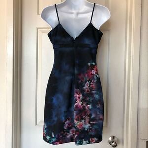 NWOT Bebe Amanda Print Deep V Scuba Mini Dress