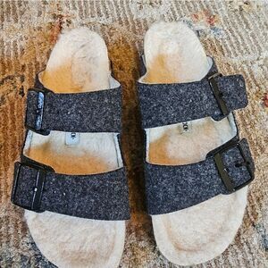 NWOT Birkenstock Happy Lamb Wool Felt Sandal Sz 37 Or Us 6