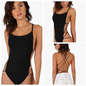 🔹️NWOT Black Strappy Open Back Bodysuit Medium
