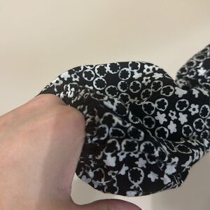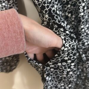 It is 100% cotton and feels like wearing a t-shirt. This has pockets and a tie waist belt.