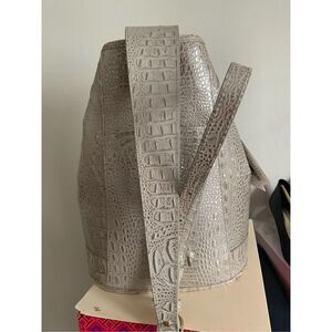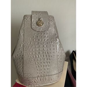 NWOT Brahmin Melbourne Allie Sling Backpack. Drawstring closure. Single kangaroo and pen pockets. Interior: zip pocket and key clip. Back slide-in pocket. Adjustable strap color is Oyster. Approximate Dimensions: 12.25x9.5x 6.5”. Dust bag included.