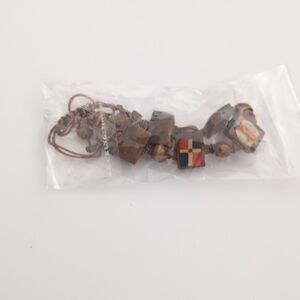 NWOT Brown Wood Beaded Catholic Cross Dominican Republic Flag Adjustable Slider Bracelet