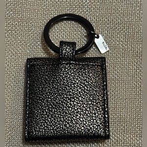 NWOT-COACH Gold and Black Leather Horse Carriage Photo Frame Bag Charm, Keychain