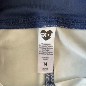 NWOT CX-J Justice Leggings, Size 14, Blue with tie dye down the leg. Never worn.