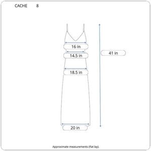 Chic layered shift midi dress with stunning feather patterns on tiered fabric all throughout. Feather patterns are a blend of black/gray/silver color-way. Spaghetti straps. Note that “Cocoon” does not refer to this dress style, but it refers to the name Cache gave this particular dress. Versatile, as it can be worn as formal wear, party wear, or to a fancy dinner. This dress pops when wearing red lipstick! Includes neck scarf which adds sex appeal to the look. Discontinued style. Smoke-free and pet-free home.