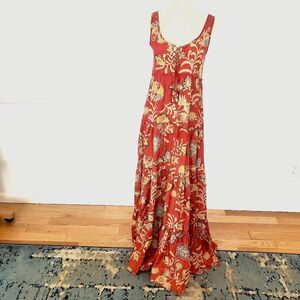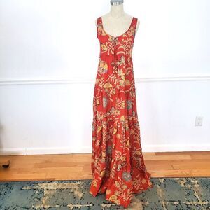 NWOT! Calypso St. Barth ‘NETTIE’ 100% SILK Tiered MAXI Lace-up DRESS Rachel Zoe!