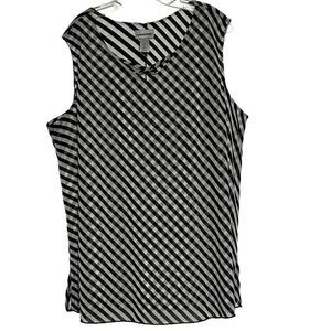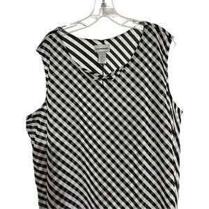 NWOT Catherines Blouse Top Women's 2X Black & White Plaid Striped Sleeveless