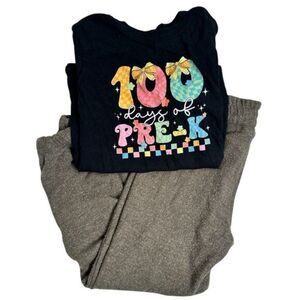 NWOT Chaser Girls Gray Soft Joggers & Black Pre-K Graphic Tee Shirt Shirt - 3T
