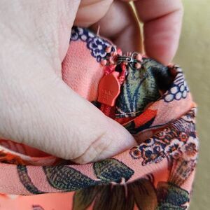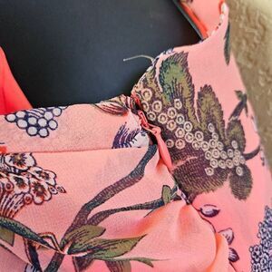 This is a new without tags one shoulder dress by Chelsea28. It is light pink with floral print and a solid coral lining underneath. There is a side zipper with a hidden inner clasp. The hem is high low, with the back longer than the front.