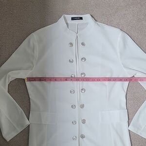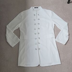 new without tags. white w silver buttons. faux pockets. . hook and eye closures in front size L