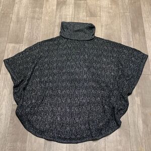 NWOT Chico’s Metallic Silver/Black Turtleneck Pullover Poncho Sweater