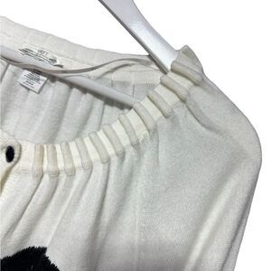 NWOT Cream Luxe Cardigan With Black Bow & Scalloped Trim Size Large