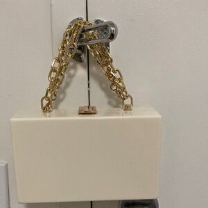 NWOT Cream Rectangular Acrylic Bag with GoldTone Triple Chain Top Handle.