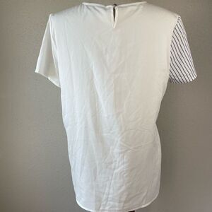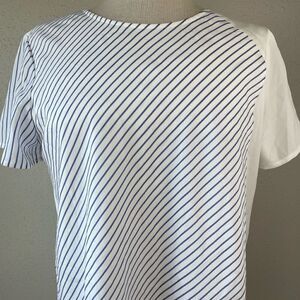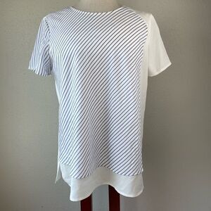 Stylish and light top by DKNY measuring 22 inches armpit to armpit laying flat and 25 inches in length from shoulder to hem.